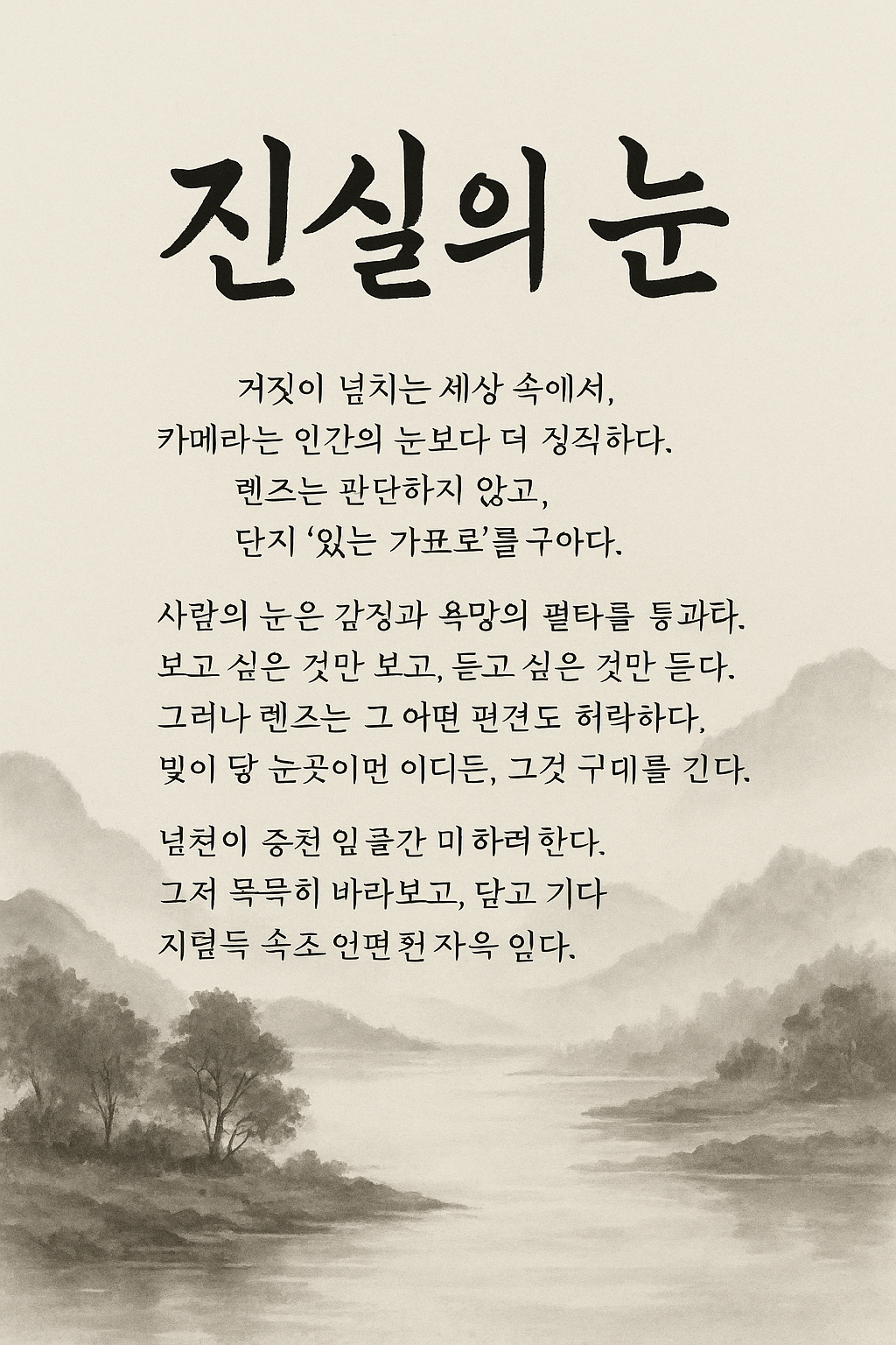 | 거짓이 넘치는 세상 속에서, 카메라는 인간의 눈보다 더 정직하다. 렌즈는 판단하지 않고, 단지 ‘있는 그대로’를 기록한다. (0) | 2025.10.27 |